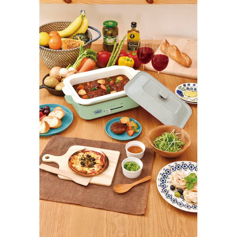 このアピックスのホットプレートは、シンプルなデザインと操作性を追求して開発されました。一枚のプレートに多彩な料理を楽しめるので、一台あれば家庭での料理の幅が格段に広がります。また、温度調節や加熱時間を適切にコントロールできるので、料理の幅広い調理法にも対応可能。